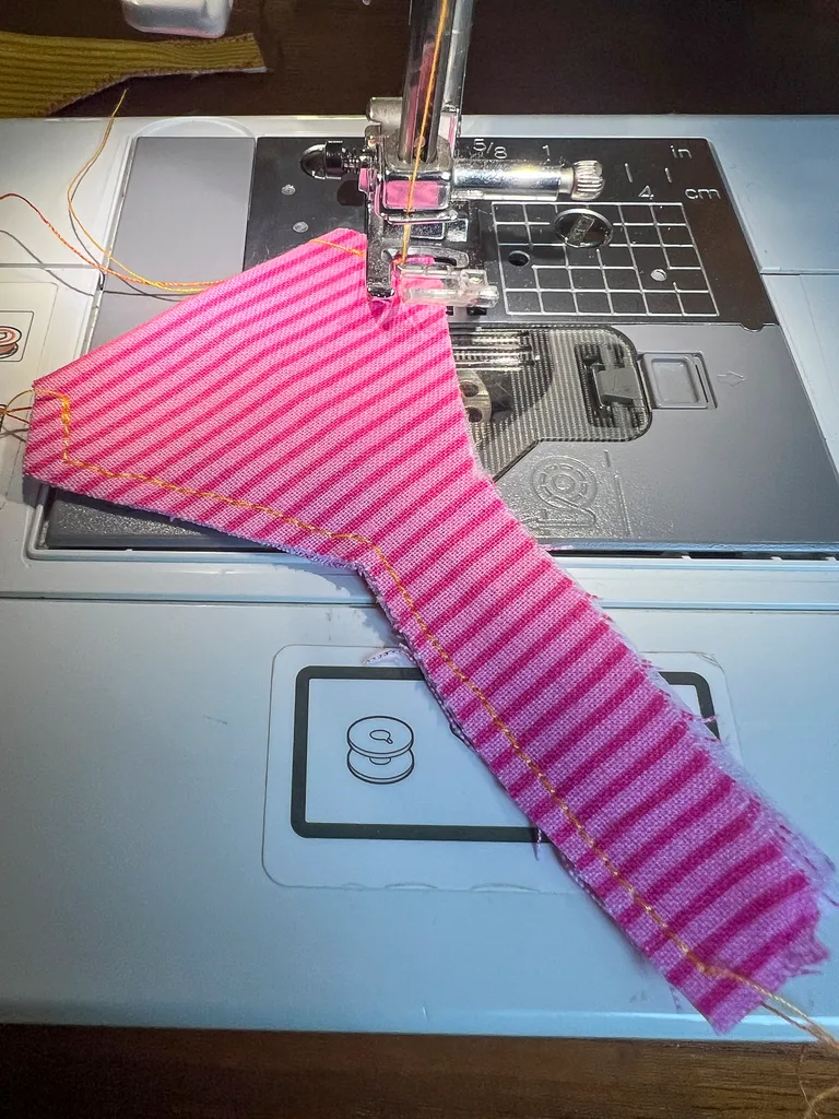 Set machine to a slow speed for precision, then sew a topstitch 5mm around the edge of both feet. Backstitch on both ends. Repeat for beak.