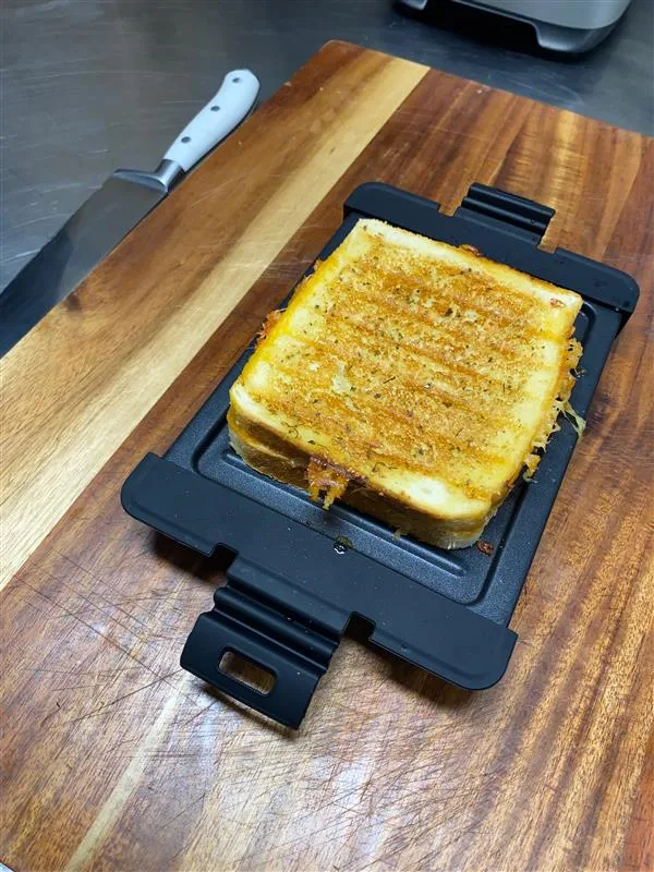 Major success. While it was in the microwave (we had it in there for 4 minutes total, but checked it halfway), the first thing we noticed was the smell. It smelled so good! It came out crispy and the cheese oozed, which is the ultimate goal for any toastie TBH.
