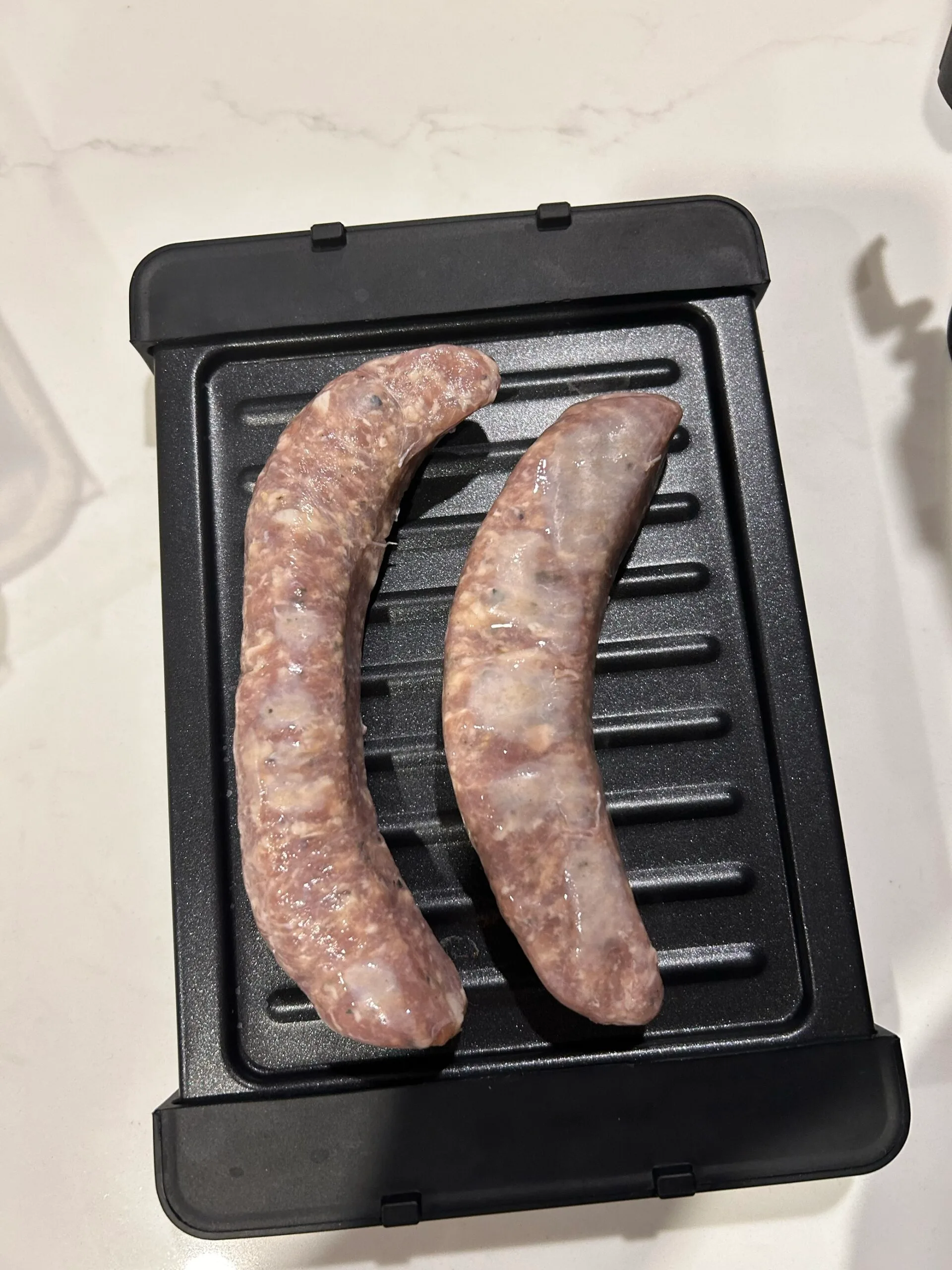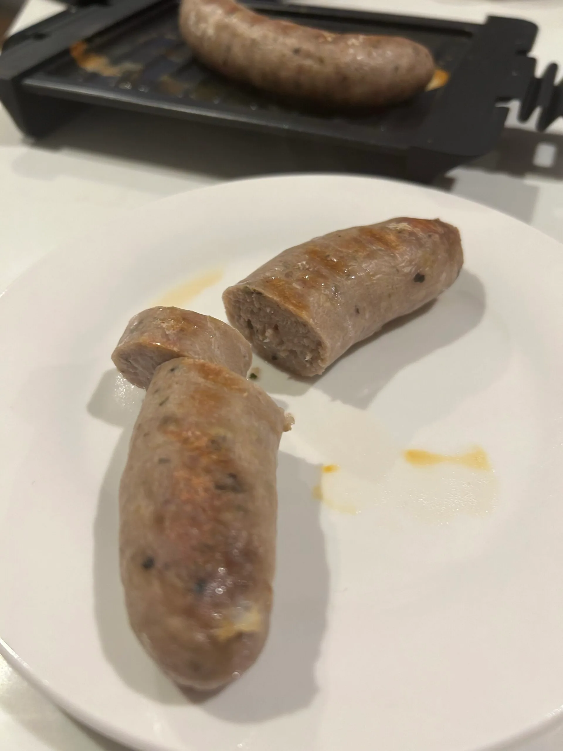 Yes, it did work much to my surprise! After preheating the plates, the sausages immediately started sizzling. I think pre-heating is what gave it the slightly darker lines on the sausages, and the 4 minutes is what cooked it through. The colour of the sausages wasn’t as dark as I like – it gave it faint lines and colour, however I’m sure if kept in a little longer, it probably would have gone darker. It was cooked through perfectly and quite juicy.
